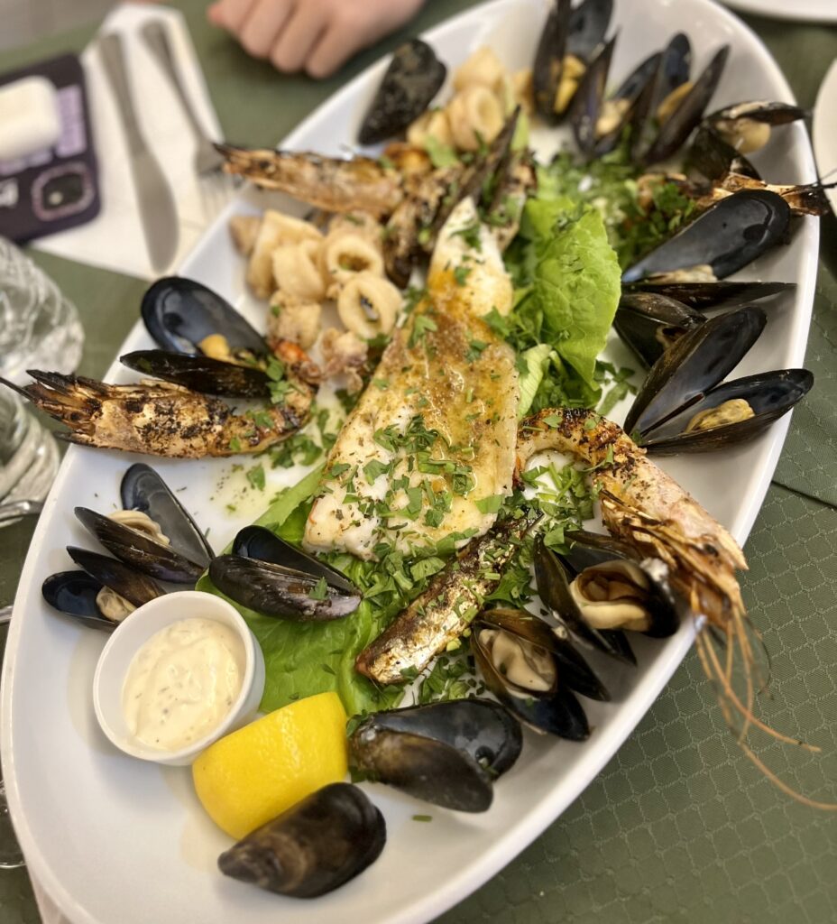 Roda was a great place to stay. It had a beautiful beach that was lined with bars and restaurants. Two of the top-rated hotels on TripAdvisor are the Roda Park Restaurant and Nikos Family Restaurant. They are located next to each other, so you can go to the other if one of them is full. Both restaurants serve mouth-watering Greek cuisine and Mediterranean fare in generous portions. I recommend visiting when they hold their Greek Nights because they have dancing and live music while you eat. The Greek Nights are very popular, so book in advance.